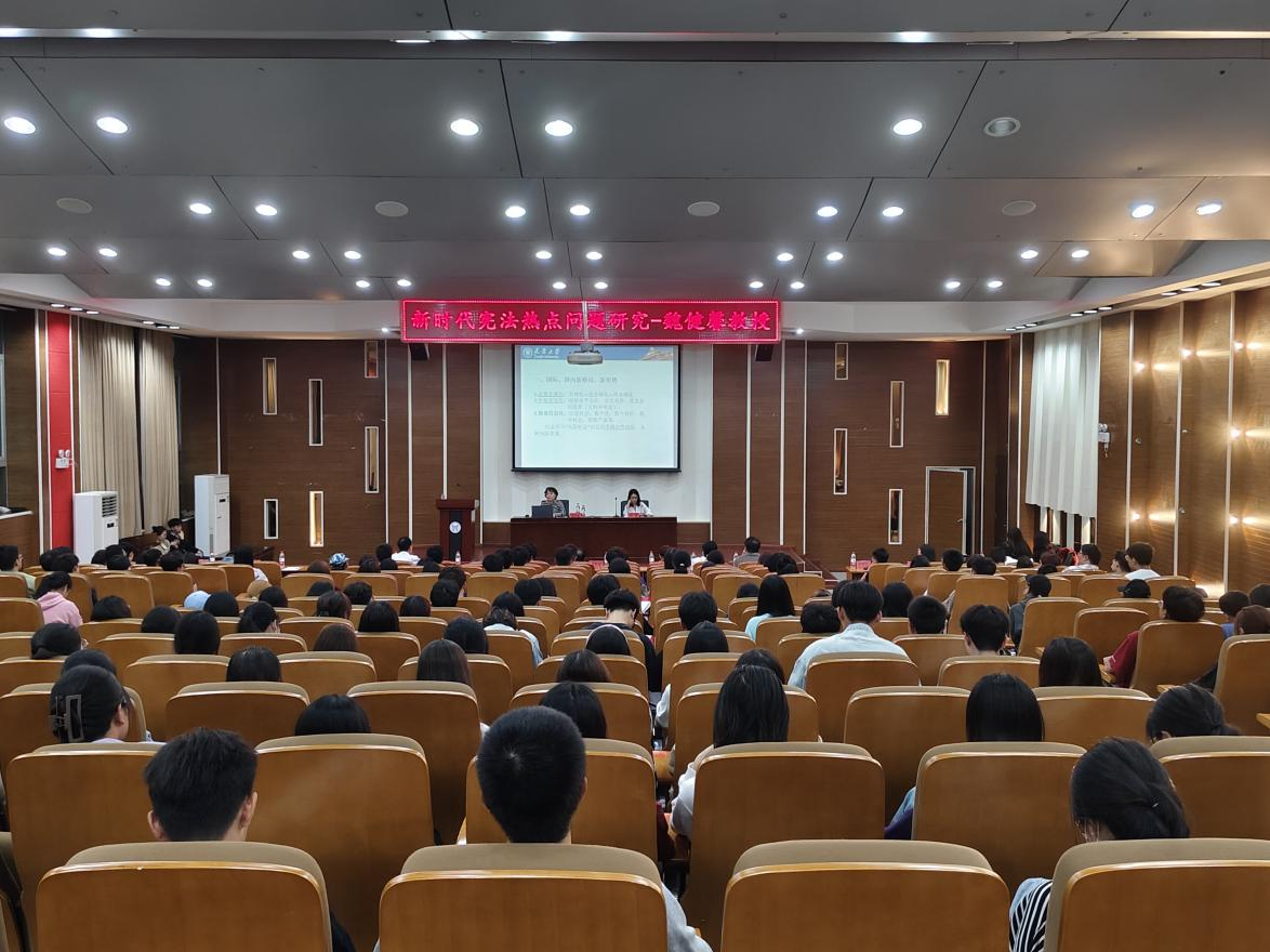 博士生导师魏健馨教授,为师生们带来题为“新时期宪法热点问题研究”的专题讲座。讲座由法律系主任朱京安教授主持,陈慧副教授担任与谈嘉宾,刘书祥教授等法律系教师和200余名学生共同聆听了这场学术报告。