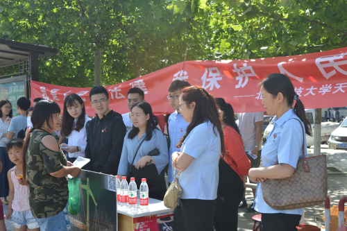 对此,为了满足城镇居民对法律法规知识的需求,加强居民法制意识,提高人民群众的维权意识,为人们现实生活中遇到的实际法律问题打下良好的基础。5月14日早晨8:30,天津市宝坻区人民法院、法律系狴犴法律咨询室、法律系学生党支部、法律系分团委学生会在周良劝宝超市门口联合举办“送法下乡”活动。为人民群众普及法律知识、进行公益咨询。