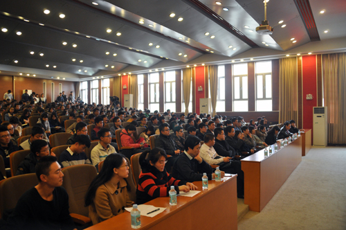 讲座正式开始后,韩司长首先着重强调了作为一名法律人必须具备的条件----法律原则、法律逻辑、法律精神。他说:“作为一名合格的法律人,需要秉承法律精神,用公平正义的专业态度对待面前的世界。”他倡议用科学的法律思维解决日常生活问题,以平衡的视角观察周围事件,用严密的逻辑推理合理揣测身边案例。随后,韩司长就三个要点“知识,思维,能力”,清楚明晰地概括了学习法律所必要掌握的重点内容。他教导学生要勤读书,让读书成为一种信仰。针对如何明确的进行日后的学习生活,韩司长提出三个要点“哪里学,怎么学,学什么”,并分别向学生举例说明,以便学生深入了解。他向p站