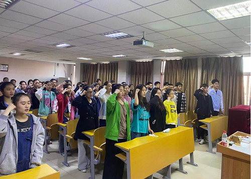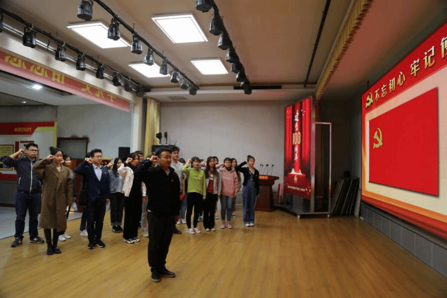 各党支部、分团委及学生会等师生代表组建联合实践团,赴宝坻区党员教育培训基地——宝坻旭辉红色教育基地开展“忆党史、感党恩、担使命”主题实践活动。活动中,师生代表们齐聚主会厅重温入党誓词,在党旗下接受了心灵的净化和洗礼。