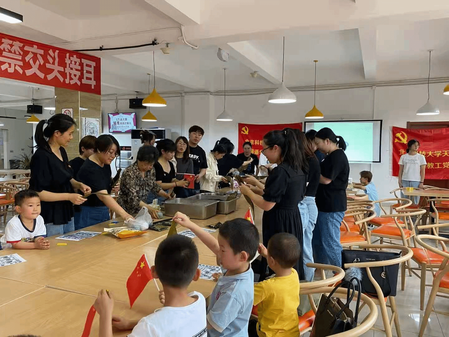 6月11日下午17:30,外国语p站 教工党支部和学生党支部在二食堂教工餐厅联合开展“浓浓粽意情 拳拳爱国心 学党史惜粮 党群共成长”活动。全体党员及群众家属参与。学生党支部书记李萌致开幕词,学生党员韩慧同志主持本次活动。