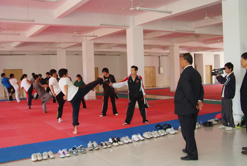 关于体育教育教学工作情况介绍后,专家组实地参观了体育教研室、资料室、器材室,考察了羽毛球、乒乓球、跆拳道、武术以及瑜伽课的现场教学情况。专家组对p站