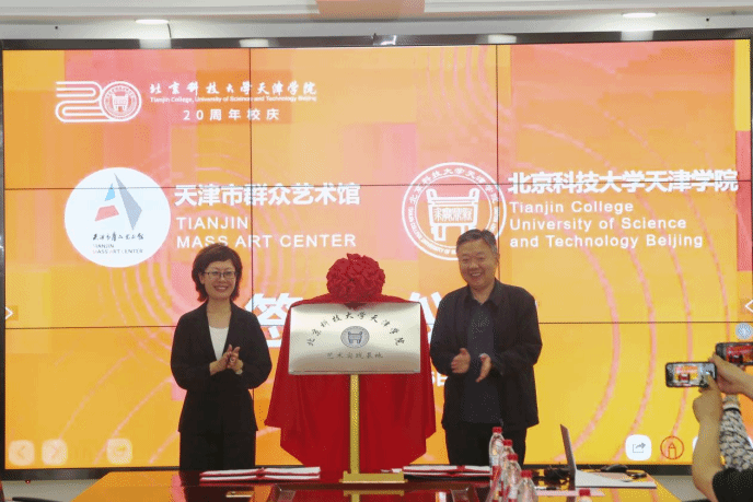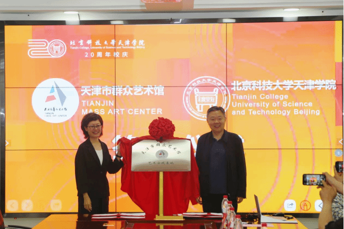 刘文艳馆长和丁煦生院长为天津市群众艺术馆艺术实践基地揭牌