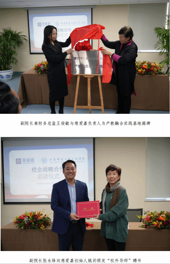 与北京慈爱嘉养老服务有限公司举行合作签约仪式暨产教融合实践基地揭牌仪式。