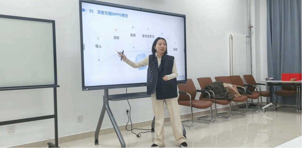 的韩红蕾老师对BOPPPS教学模型进行了全面而深入的剖析。她指出,运用BOPPPS模型的核心在于激发学生的学习兴趣,提升其参与度,确保学生真正学会、学懂。韩老师结合自身丰富的教学实践,生动阐述了如何在课堂的每一个环节精准施策,以及教师应如何不断学习新的教学理念、教学模式和教学评价方法,将其巧妙融入课堂,推动课堂的持续改革与创新。