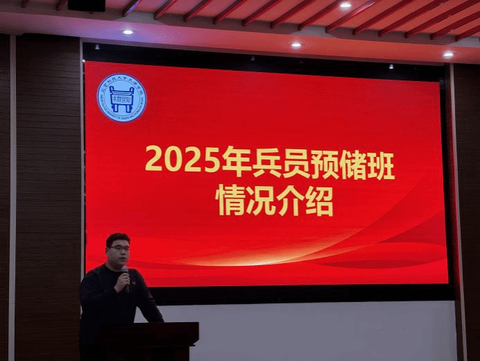 武装部李雲啸老师详细介绍了兵员预储班的成立背景、人员规模、培养目标以及预期成果等基本情况,勉励所有参会同学认真学习、刻苦训练,矢志参军、磨砺意志,培养坚强的意志品质,练就过硬的军事技能,尽快成长为一名优秀的预征预储后备兵员,早日穿上绿色军装,奔赴热血军营。