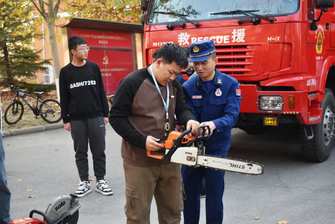 本次活动设置线下宣讲、宣传品发放和消防救援车辆器材展示两个展区。一方面通过制作精美的宣传页,将校园生活中消防、反诈的安全常识,应急求助的联络方式向同学们普及;另一方面通过新城消防站指战员的专业展示,吸引广大师生走进消防,了解安全,学习安全知识和自护自救技能。