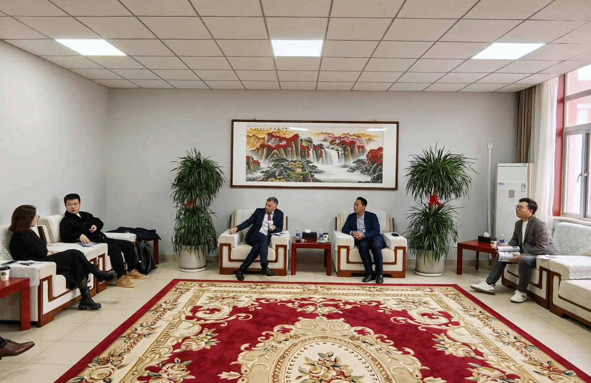 副院长张永锋在办公楼会客室会见来宾,国际合作交流处处长张悦出席座谈交流。