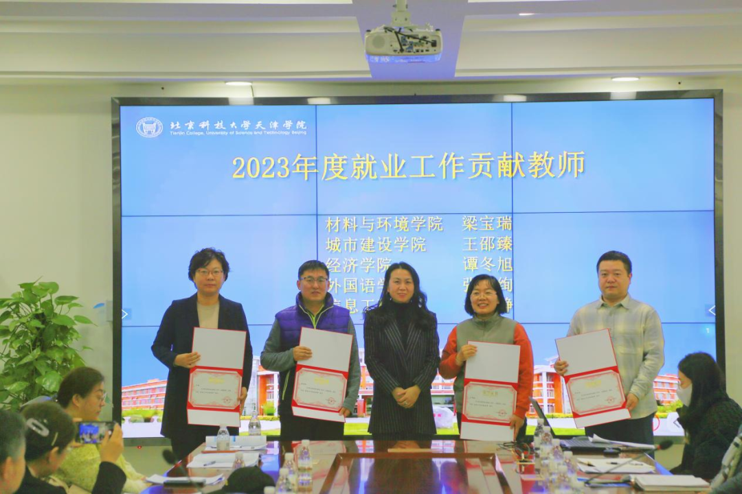 领导为就业工作先进集体、先进个人、贡献教师颁奖。