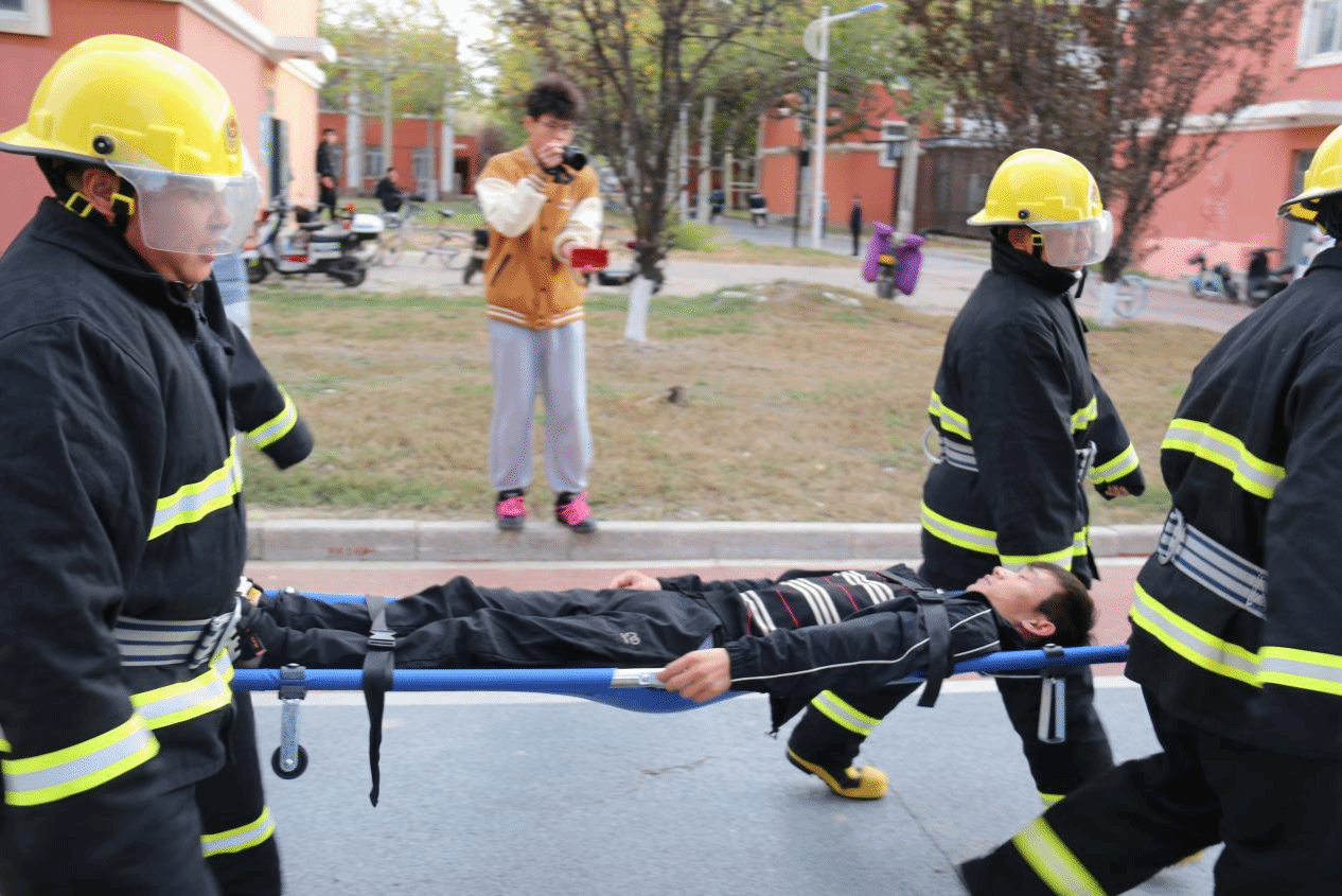 本次演练活动模拟当高层公寓内因违规使用明火引发火情的突发状况,考验同学们的应急自救互救能力和p站