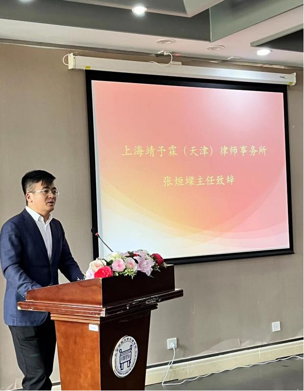 张永锋副院长、产学研办公室彭鹏主任、法律系朱京安主任、法律系党总支张莉书记以及上海靖予霖(天津)律师事务所张烜墚主任、周娜主任、张振陟副主任出席本次签约仪式,法律系教师代表、事务所律师代表和法律系二十余名学生共同在场见证。