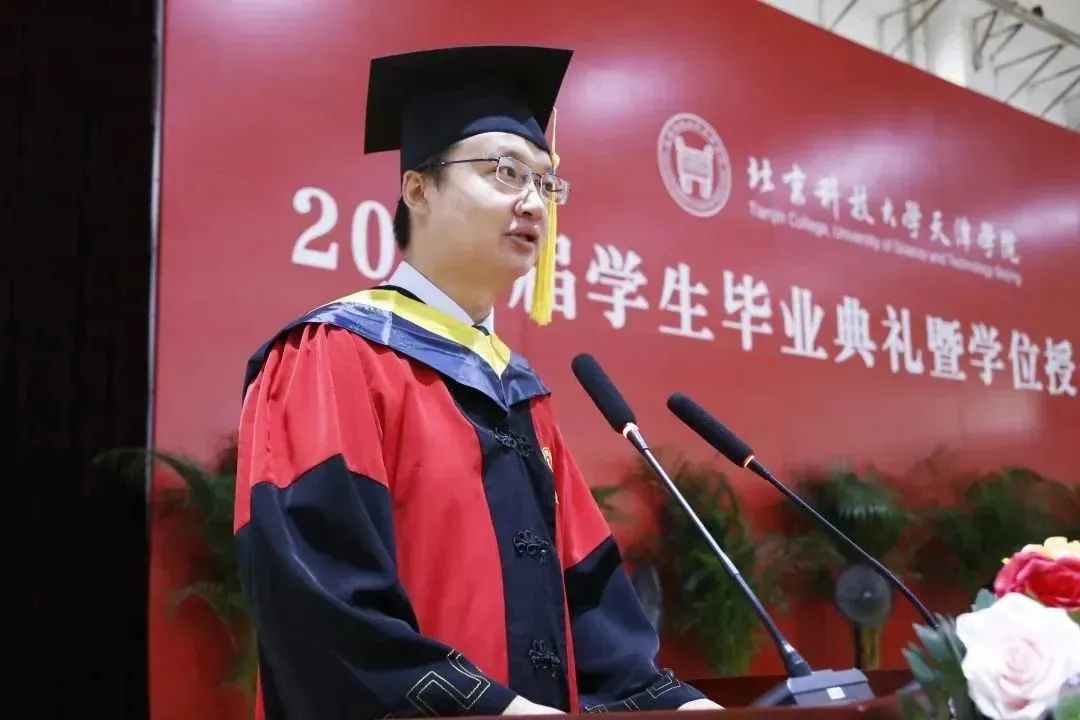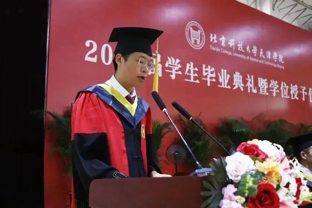 刘天驰代表全体毕业生发言,他表达了对未来的憧憬、对过去四年青春的炙热回忆,向母校、父母和师长致以衷心的感谢与最真诚的祝福。