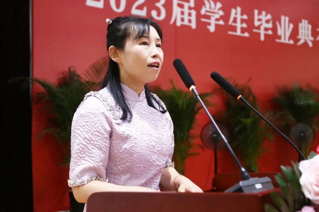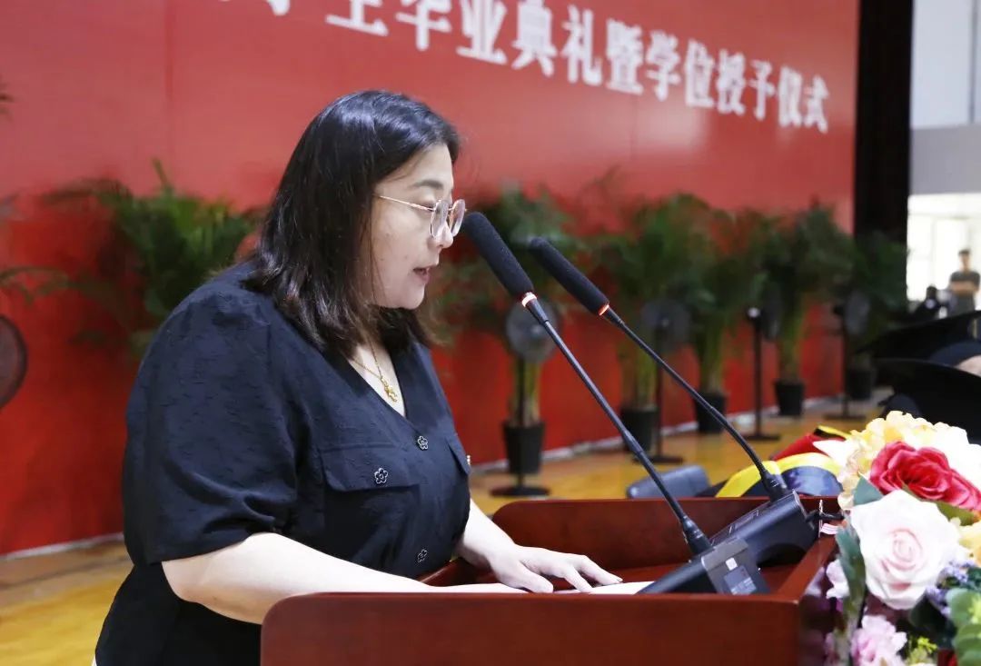 副院长班岚作为教师代表发言,向圆满毕业、再启新程的同学们,表达了最美好的祝福,希望同学们毕业后能够砥砺奋斗、志存高远,在艰苦奋斗中成长成材,百炼成钢,承载p站