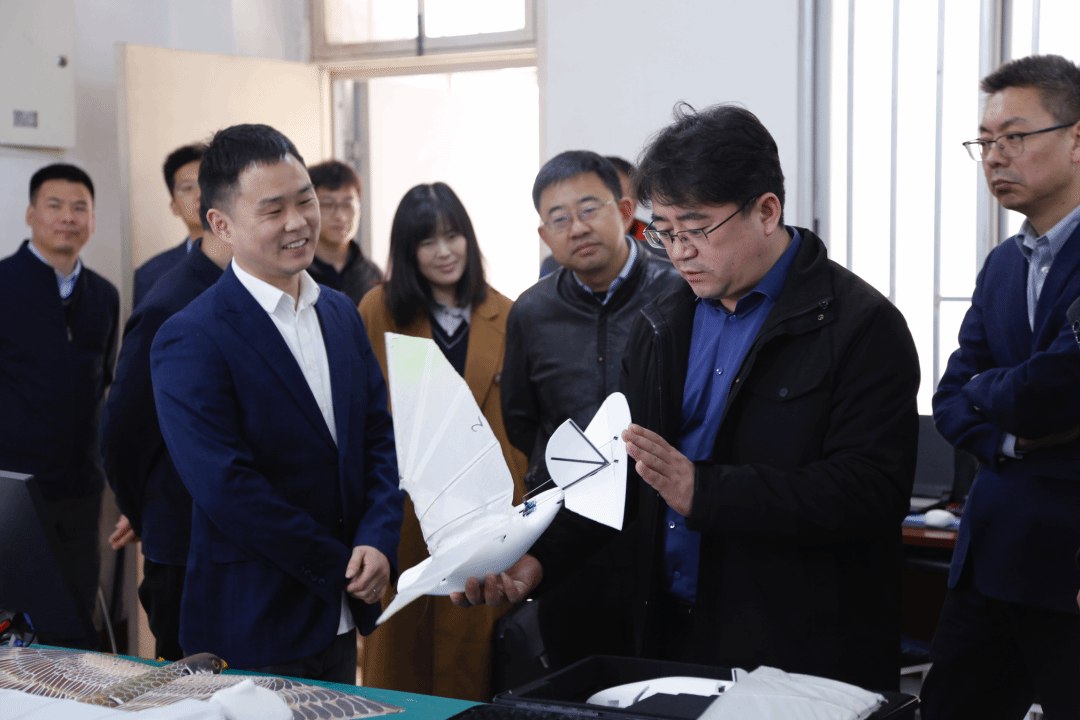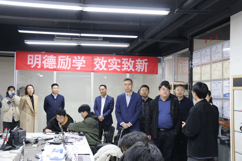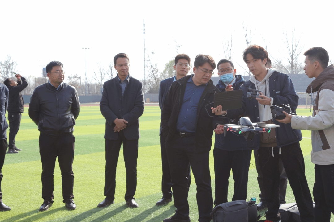 关于毕业生就业、劳动教育和创新创业教育的工作介绍,实地考察了无人机展厅和众创空间,并现场观摩无人机飞行演练和智能车展示。