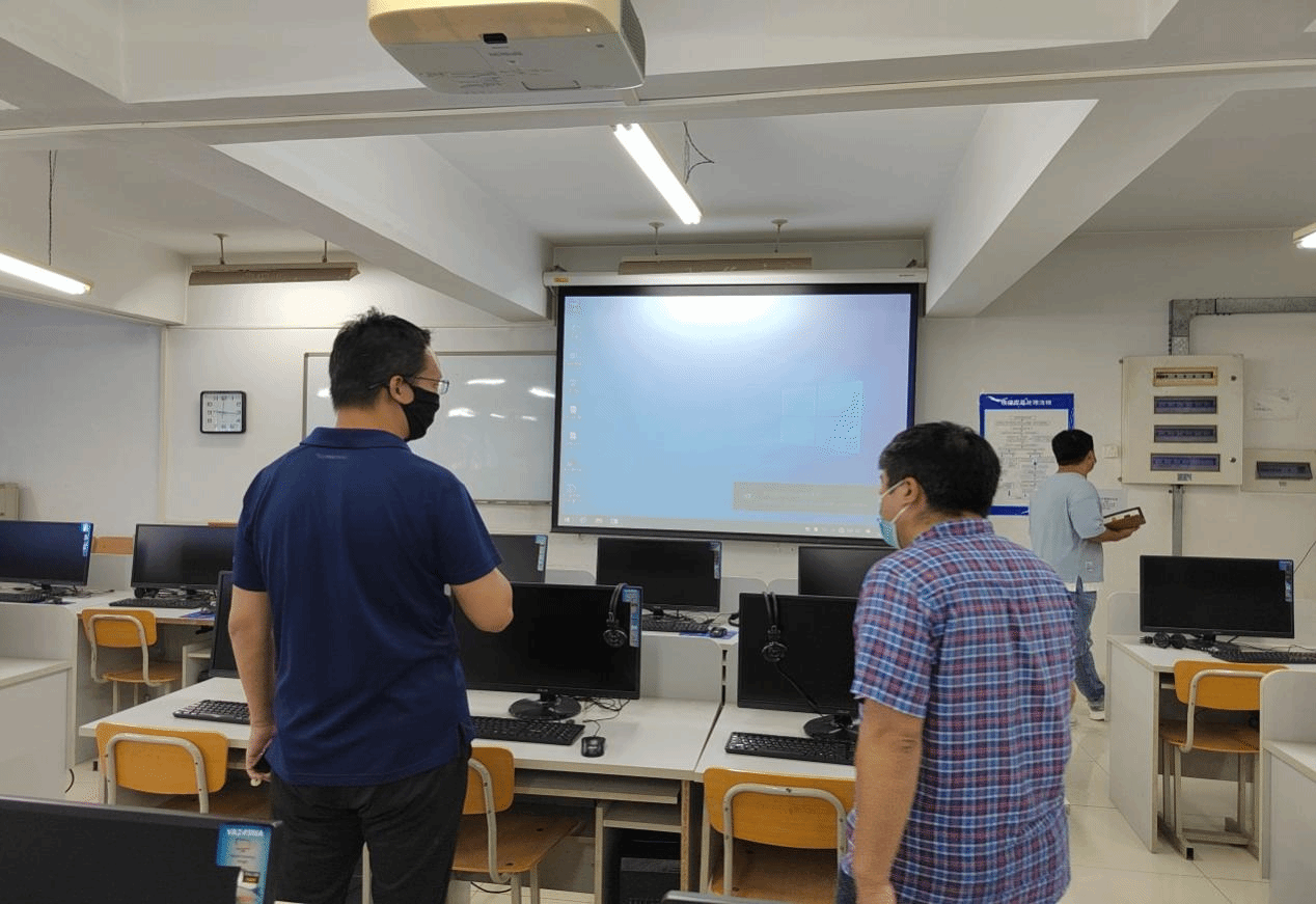丁煦生院长、张永锋副院长带队主要负责8教、9教多媒体教室的检查。8、9教多媒体教室是p站