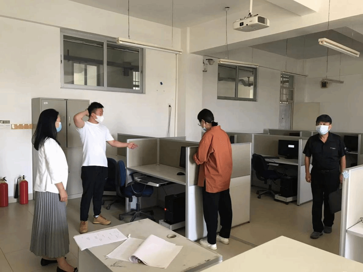 最大的实验楼,其中包含机房、语音室及实验室等,叶振楠副书记认真地检查了每一间教室,指出了存在的问题,叮嘱相关部门及时调试设备,确保上课能正常运转。