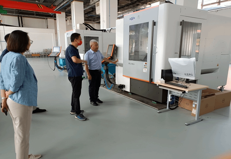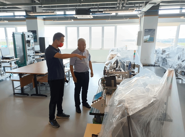 叶振楠书记一行来到天津滨海新区先进制造职业技能公共实训中心,在企业中航教育负责人的陪同下首先参观了工业4.0车间的众多智能制造设备,之后参观了航空制造实训区了解了实训中心的实训理念、内容、流程和要求。