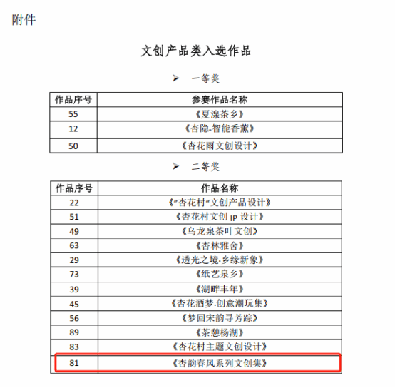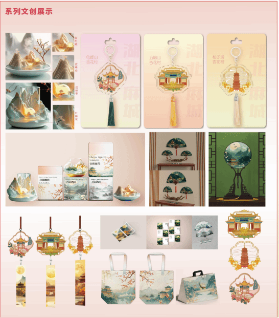 师生积极组队参赛,历时6个多月,历经作品技术审查、初审、决赛评审及答辩环节,由师生齐心协力完成作品《杏韵春风系列文创集》。该系列作品以湖北麻城杏花村及周边特色景点为灵感来源,融合了杏花村的文化元素与自然风光进行创作和设计。