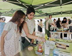 在爆米花制作区,通过留学生亲手制作、品尝,感受劳动的魅力与伟大。