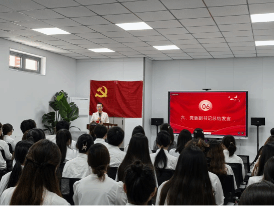 最后,党委副书记郭雅娟讲话。她首先向新发展党员的政治觉悟和积极表现给予充分肯定。同时,对全体新发展党员提出殷切期望,希望大家牢记入党誓言,坚定理想信念,不断加强理论学习,提升党性修养;锤炼过硬本领,在学习工作中争当表率,发挥先锋模范作用;永葆为民初心,主动服务师生群众,用实际行动践行“一名党员就是一面旗帜”的誓言。