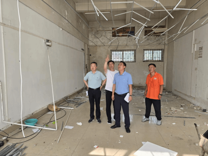 院长丁煦生、副院长张永锋、副院长兼财务总监王俊敏、党委副书记郭雅娟等领导在相关部门的陪同下,深入教学楼、宿舍楼、体育馆会议室等施工现场,详细了解了教学保障提升改造、体育馆会议室修葺及新生宿舍楼改造等项目的具体安排、进展情况以及所面临的困难和挑战。丁院长认真听取了现场汇报,对暑期校园提升改造工作给予了充分肯定,提出“严把安全生产,保障施工质量”的重要指示,并对大家在高温酷暑下坚守岗位、默默奉献的精神表示了高度赞扬。