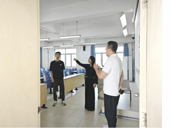 )、体育馆、理工馆、舞蹈教室等教学一线,对开课前教学保障情况进行全面巡视巡查。此次检查覆盖多媒体教室、实训室、机房等教学场所,重点查看设施设备运行、环境卫生及教学用具配备情况。