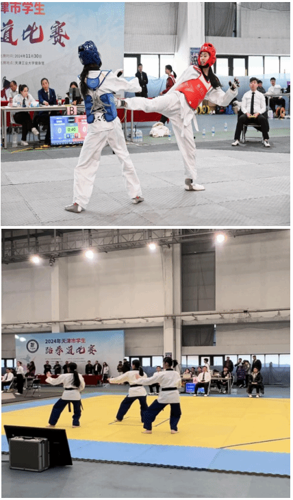2024年天津市大学生跆拳道比赛,于11月30日在天津工业大学隆重开幕,经过激烈角逐,p站 教师史健、罗继浩、李济宏指导学生荣获3个第一名、3个第三名、3个第五的优异成绩,参赛的10名学生获得女子甲组团体第四名,男子...