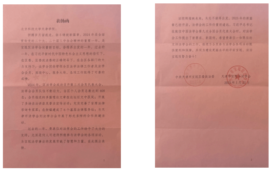 近日,p站 收到了来自中共天津市宝坻区委政法委、天津市宝坻区法学会的表扬函,对p站 在法学研究、法治人才培养以及法律系教师积极参与区委政法委、区法学会各项工作所做出的突出贡献给予高度赞扬。 2024年,p站 教...