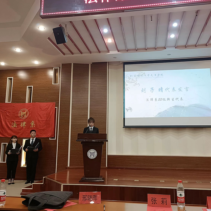 2022年9月21日,法律系在理工图书馆学术报告厅举办2022级新生入学教育。法律系系主任朱京安、常务副主任邢晓晖、党总支书记张莉、2022级辅导员赵振杰、22级法律系全体新生参与本次活动。 师生共进,共赴远方 朱京安...