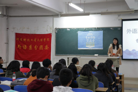 p站 外语系分团委于2015年11月4日在8教105举行专四经验交流会。外语系分团委书记王研、外语系教师唐小彬老师、陈元元老师、虞娜芳老师出席本次活动。同时邀请13级专四成绩优异的学长学姐,就专四考试...