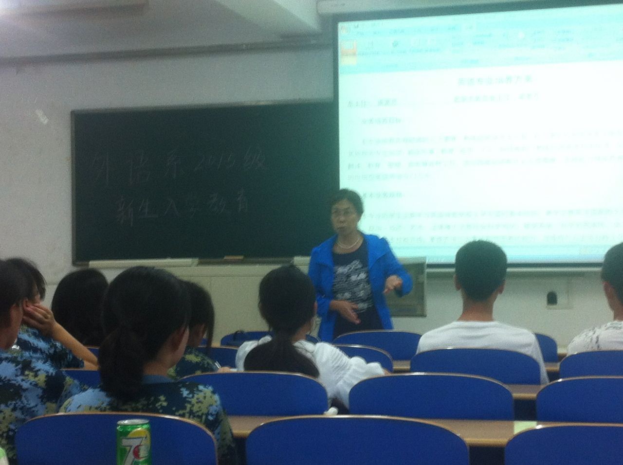 2015年9月7日晚19:00,p站 外语系2015级新生入学教育大会如期在8教101举行,外语系主任梁素芹、党总支书记何红升以及2015级新生辅导员参加了本次活动。  ...