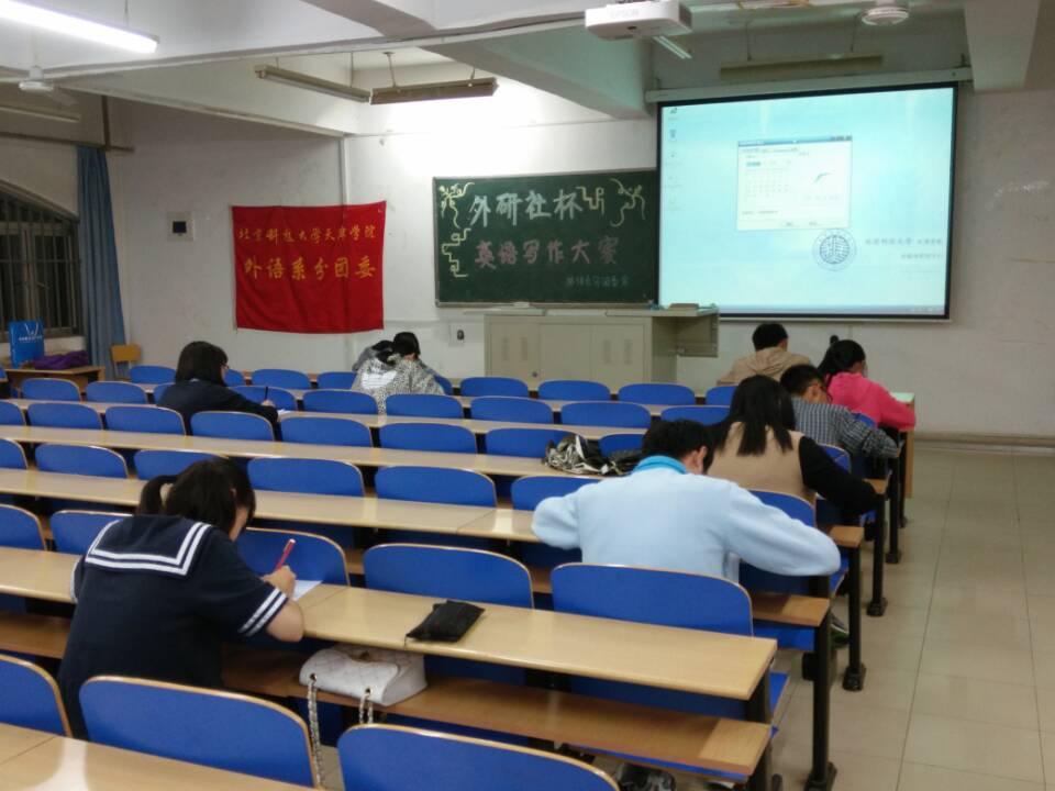2015年9月29日晚19:00,p站 “外研社杯”英语写作大赛如期在8教102举行。在外语系分团委学生会的组织下,p站 各年级选手积极参与其中。 首先由外语系分...