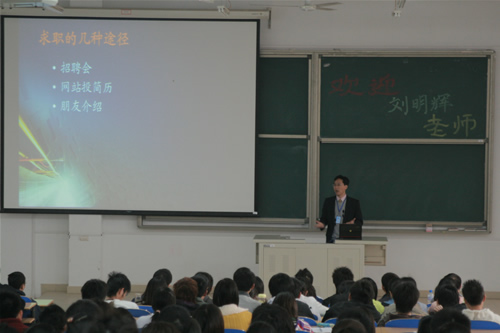 12月中旬,乐多网首席执行官、西山科技有限公司总经理、辉煌前程大学生俱乐部主席--刘明辉老师受邀来p站 ,为信息工程系08级日语特长班的同学进行主题为“就业效率和方程式”的讲座。 讲座开始,...