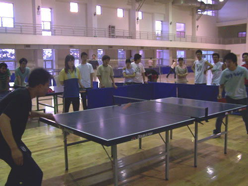 5月17日晚,在体育馆举行了p站 第二届乒乓球赛总决赛。比赛邀请体育部教师任薛担任裁判。 晚7:00,决赛开始。决战双方为05级会计和06级信息代表队,赛制分为男单、男双、女单、女双、混双五场。男单决赛中,比赛...