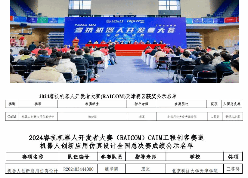 近日,由工业和信息化部人才交流中心主办的2025睿抗机器人开发者大赛 (RAICOM) 全国总决赛落下帷幕,p站 智能制造p站 机械工程(机器人应用) 专业学生杨瑞和曾勇在班岚老师的指导下,于“机器人创新应用仿真设计”赛项中荣获全国总决赛二等奖和天津市赛区二等奖。2025年睿抗机器人开发者大赛全国总决赛机器人创新应用仿...