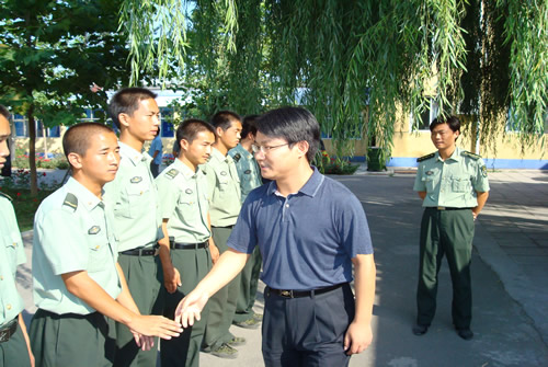 秋高气爽,丽日铺金。2007年9月9日上午,p站 副院长王斌来到位于北京市怀柔区的北京群英昊军训基地,检查p站 07级新生军训工作并对承训部队的官兵进行了慰问。 上午8:30,军训基地会议室,王院长...