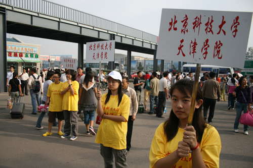9月20日 星期六 天气:拨云见日·阳光灿烂 2008年9月20日,金色的阳光洒满大地,七色的晨曦载着金色的光辉喜迎p站 08级新生的到来。 一辆辆迎新接站车满载着新生的欢笑,一面面红旗向着新生...