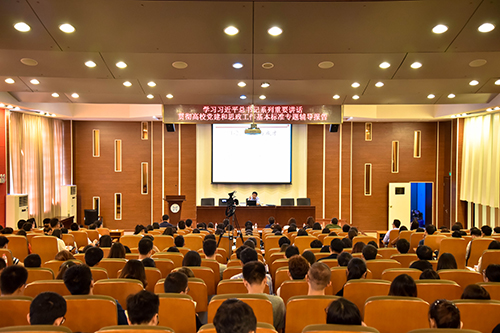王民忠教授以习近平总书记在全国高校思想政治工作会议上的讲话为中心点,从教育需要把握好的几个关系、育人的理念及对教育工作者的要求两个方面对习近平总书记的重要讲话精神进行了深刻解读。整场报告会围绕立德树人的根本要求展开,通过论述教育的新要求、新定位,为p站 师生贯彻全国高校思想政治会议精神指明了方向。王教授语言诙谐幽默,旁征博引,报告会案例丰富,通过深入浅出的分析使全体师生认识到了德育的重要性,使全体教育工作者受到了极大的心灵鼓舞。