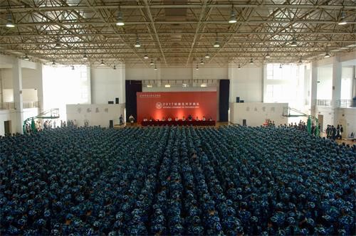 9月4日上午9时,p站 2017级新生开学典礼在体育馆隆重举行。宝坻区区委常委、办公室主任宋建,京津新城党工委书记周振亮,京津新城党工委副书记、管委会主任纪永红,周良街道办事处主任郑宝东,p站 党委书记、院长王斌,副院长张永锋,党委副书记白亮、叶振楠、孟菲菲,财务总监王俊敏,学位委员会主席宋存义出席开学典礼,p站 2300余名2017级新生参加典礼。典礼由党委副书记白亮主持。