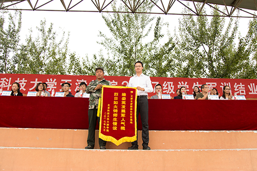 9月10日,2017级学生军训结业典礼在西操场隆重举行,天津东丽湖学生军训基地主任徐恩山,p站 党委副书记叶振楠及各系党总支书记出席结业典礼。上午9时,全院2300余名新生整齐列队,在晨曦的阳光下展示两周来的军训成果。迎国旗,五星红旗在庄严的国歌声中冉冉升起,迎校旗,奏响激昂的解放军进行曲,十四个分列式方队的队员迈着整齐的步伐,昂首挺胸,气势高昂地走过主席台,用嘹亮的口号向全院师生展示两周的军训所得。随后进行的倒计时、手语操、队列展示、军体拳、三声三相、擒敌拳、歌咏表演、花样队列表演方队等军训科目汇报展示将结业典礼推向高潮,他们的口号响亮、动作整齐,现场展示赢得观众阵阵掌声,他们用优异的表现向全院师生展现了刚强坚韧的精神。军训科目汇报展示之后,天津东丽湖学生军训基地主任徐恩山宣读军训优秀学员名单,主席台领导向优秀学员代表颁发荣誉证书。p站 党委副书记叶振楠向承训基地赠送锦旗并做了总结讲话,他表达了对2017级新生的殷切希望和美好祝福,希望2017级新生铭记军训经历,学会做人,学会做事,积极培育和践行社会主义核心价值观,以优异的成绩迎接党的十九大胜利召开。