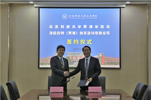 2017年9月8日,p站 与美国法拉古特p站 天津校区举行战略合作协议签约仪式。出席本次签约仪式的双方领导及嘉宾有:美国法拉古特p站 中国区总校长杨晓柯、法拉古特p站 天津校区招生办主任吴积宗、AFA项目部主任吴莹和分校区主任李维,p站 副院长张永锋、学生处副处长孟祥瑜。