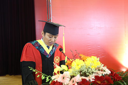 典礼在雄壮的国歌中开始。副院长张永锋宣读优秀毕业生名单。