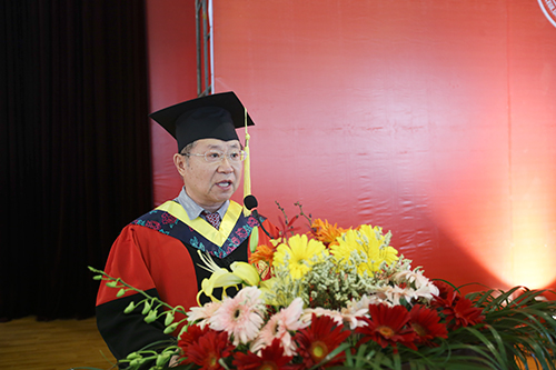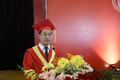 党委书记兼院长王斌教授代表p站 领导和广大师生员工,向圆满完成学业的毕业生表示最热烈的祝贺。他对毕业生给予了殷切的希望和深切的祝福,同时希望全体毕业生能够坚持奉献社会的崇高理想、坚持孜孜不倦地求知问学、坚持不忘初心,并希望同学们继续关注母校的发展,常回家看看。