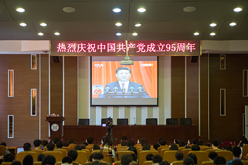 7月1日上午10时,p站 组织教工、学生党员、主要学生干部、学生代表在理工馆学术报告厅观看了庆祝中国共产党成立95周年大会直播,聆听了习近平总书记的重要讲话。
