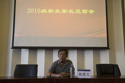 9月3日下午14:00,2016级新生家长见面会在p站 理工图书馆学术报告厅举行,院长郭景文教授向2016级新生家长介绍p站 情况并回答家长所关心的问题。