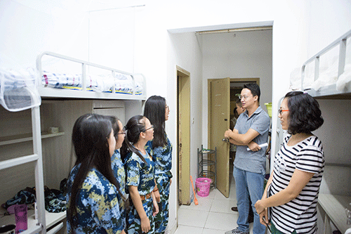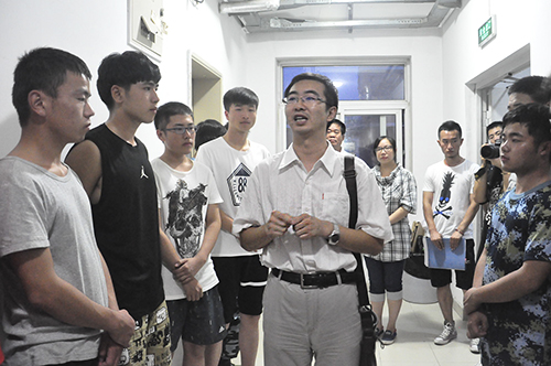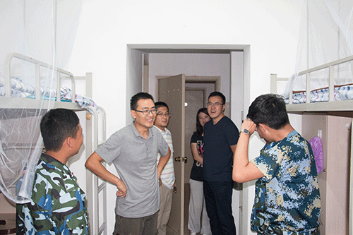 2016年9月6日晚,p站 院长郭景文、党委书记王斌、副院长曾广晟、财务总监王俊敏、党委副书记白亮、叶振楠走访了新生宿舍,看望并慰问2016级新生。