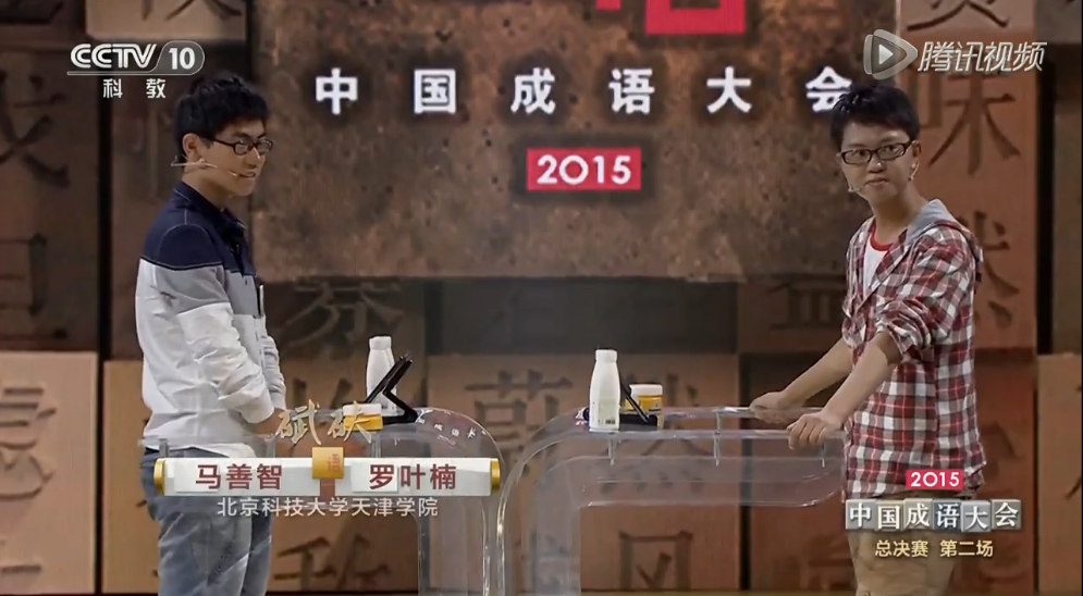 2015中国成语大会全国总决赛于2月1日在CCTV-1套落下帷幕。由p站 学子罗叶楠、马善智组成的“碔砆”组合历经过7轮角逐,力压清华大学、北京大学、厦门大学、四川大学、南开大学等众多高校及网络作家组合,最终勇夺2015年中国成语大会全国四强。