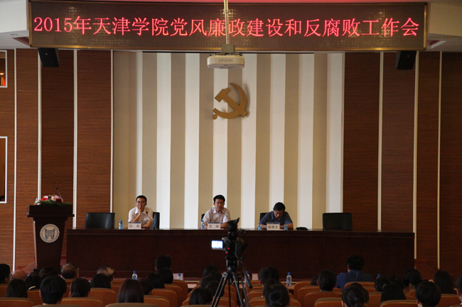 6月3日,p站 召开2015年党风廉政建设和反腐败工作会。p站 党委书记王斌,院长郭景文,党委副书记白亮、叶振楠、孟菲菲,全体科级以上干部、各系党总支书记、各党支部书记参加了会议。会议由党委副书记白亮主持。