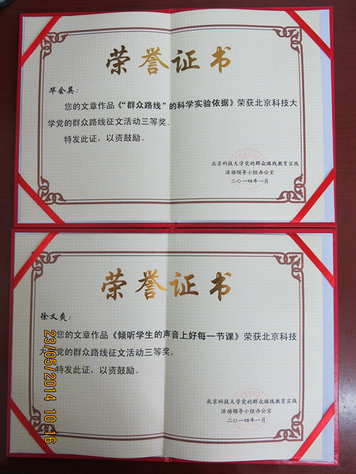 有关专家评审,我支部毕会英同志的文章《“群众路线”的科学实验依据》和徐义爽同志的文章《倾听学生的声音上好每一节课》喜获p站