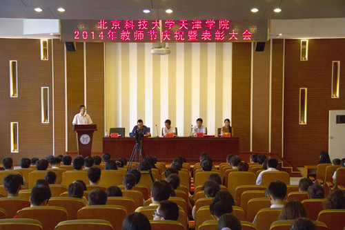 2014年教师节庆祝暨表彰大会在学术报告厅隆重举行。院长郭景文,党委书记王斌,副院长曾广晟,财务总监王俊敏,党委副书记白亮及各系部负责人出席了庆祝大会,大会由党委副书记白亮主持。